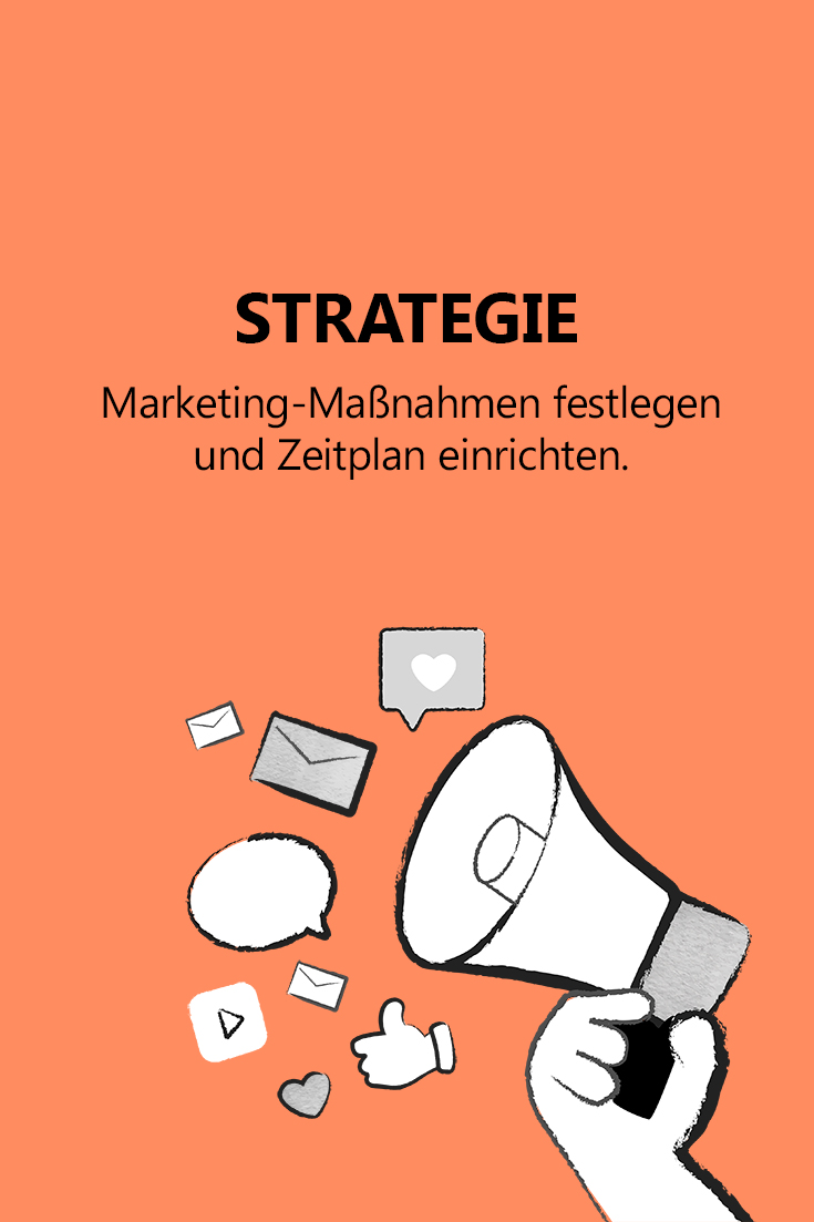 Aufgrund der vorangegangener Ergebnisse Marketing-Maßnahmen festlegen. Produkt oder die Dienstleistung positionieren, die Markenbekanntheit steigern, neue Kunden gewinnen und bestehende Kunden binden. Budgetierung und Ressourcenplanung für Marketingaktivitäten fest einbinden.